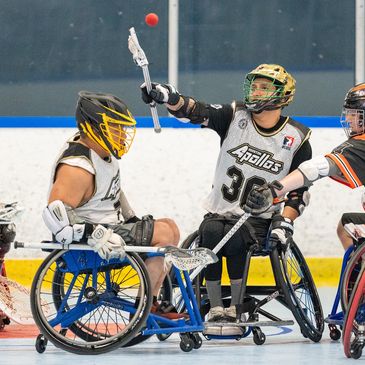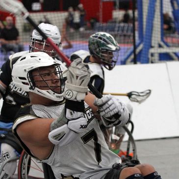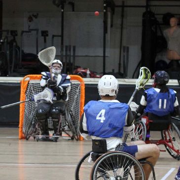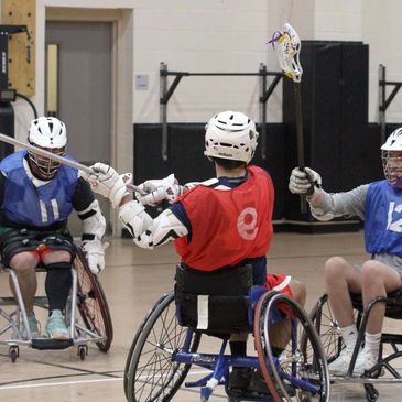 Wheelchair Lacrosse scrimmages and beginner to intermediate skills. All equipment is provided and the level of contact is adapted to each practice's participants. Typically players wear helmets, gloves, elbow and chest protectors and play using a sports chair.